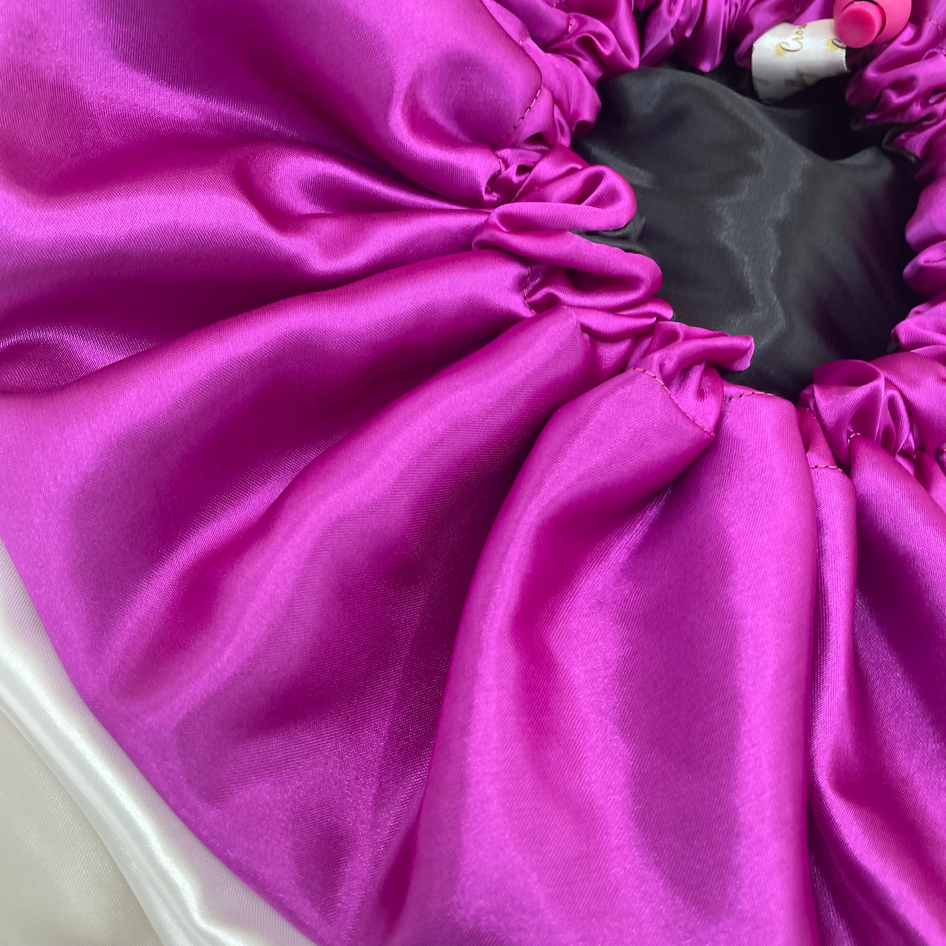 Berry Luxe Satin Bonnet (Magenta & Black)