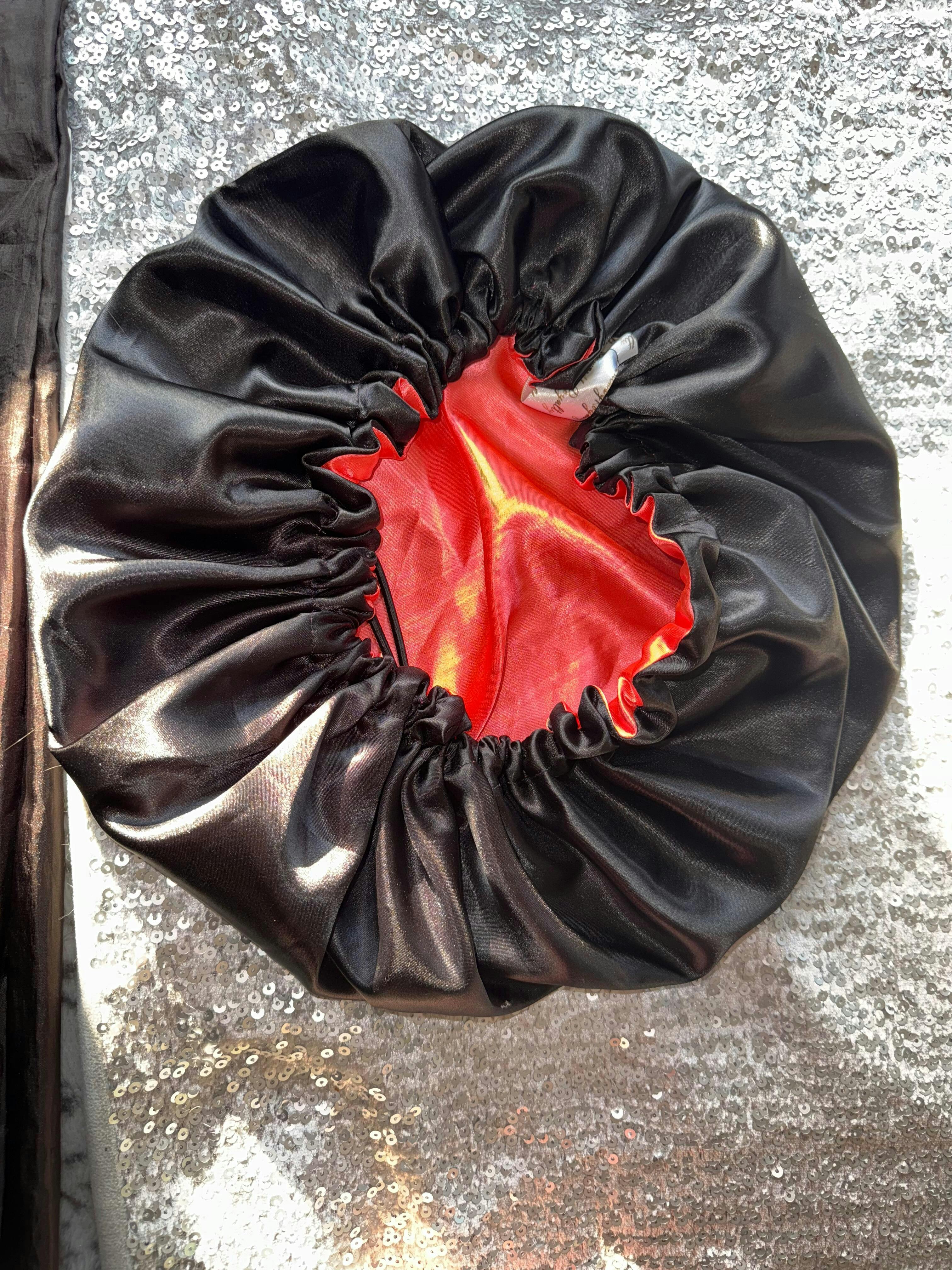 Black and Peach Pink - Satin Bonnet Drawstring